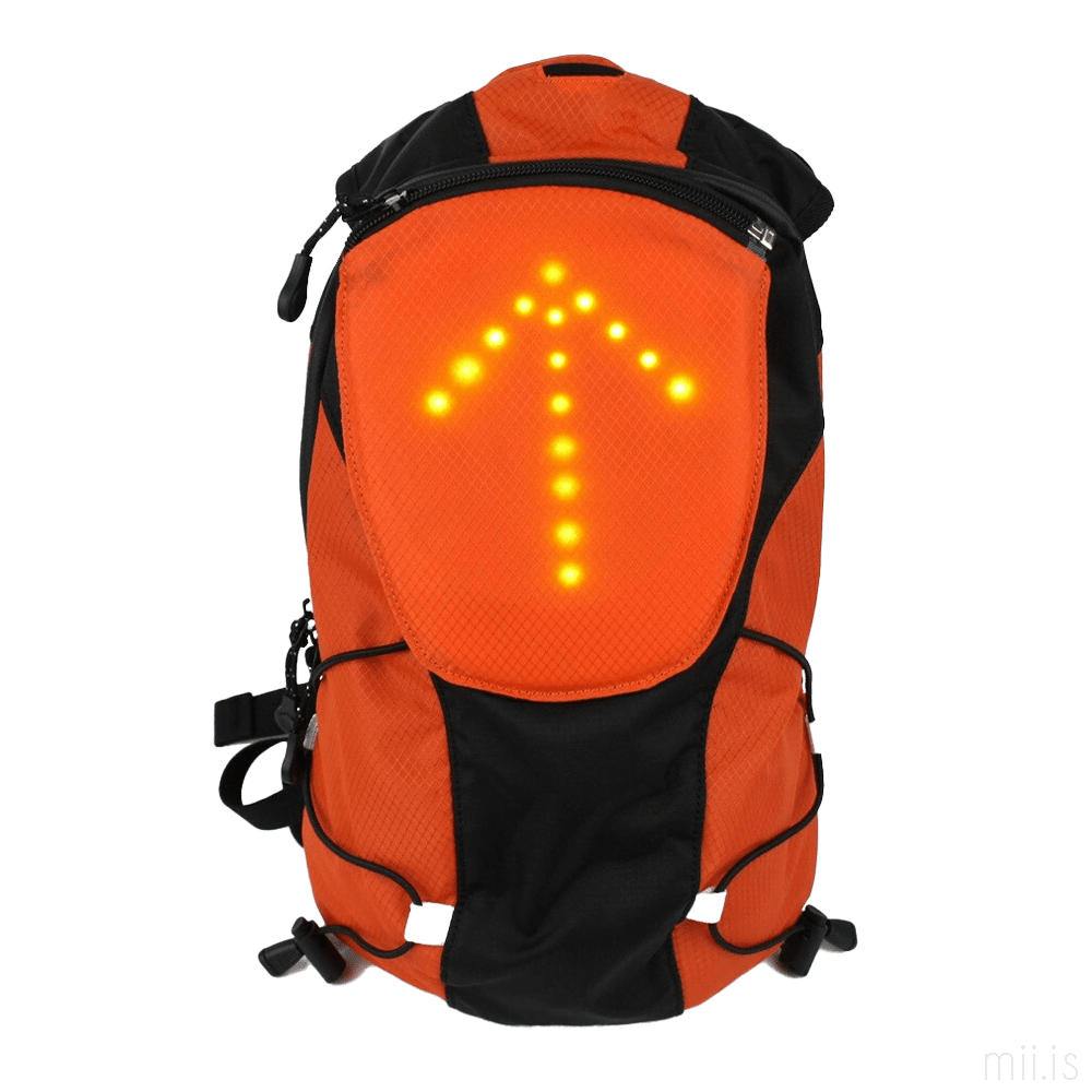 Bráðsniðugur bakpoki sem er með LED ljósi aftan á sem er hægt að stjórna með fjarstýringu sem fylgir með bakpokanum.