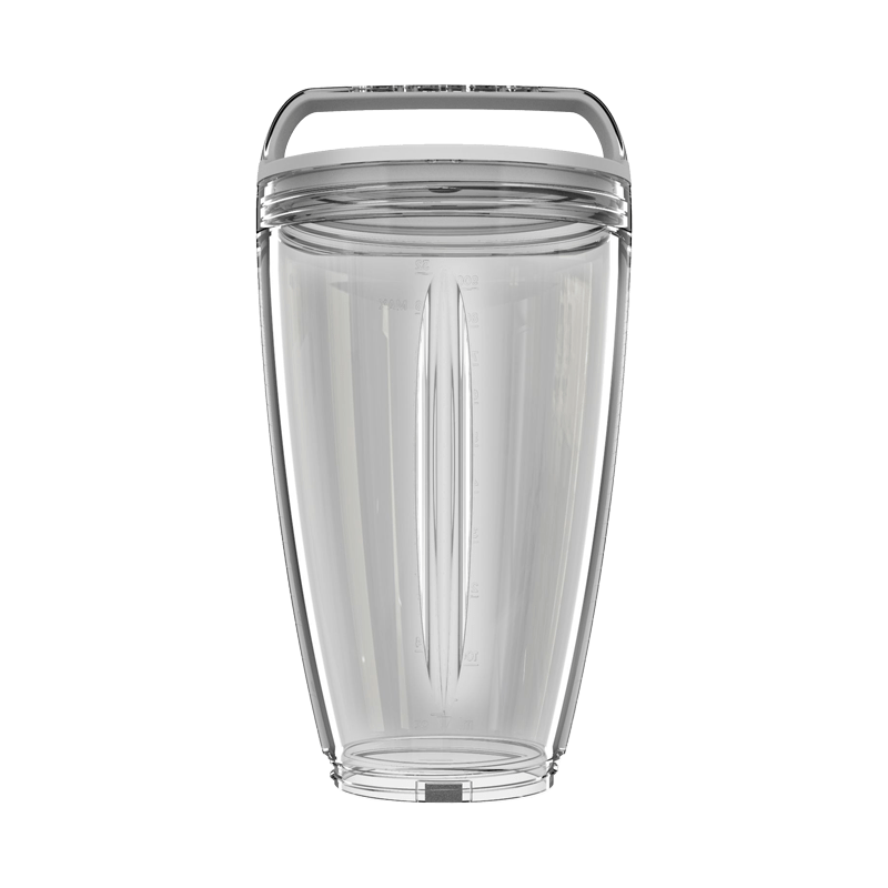 Ef að 475ml duga ekki til þá er ekkert mál að bæta við XL glasinu og geta þá gert drykki og góðgæti í 950ml stóru glasi. Á glasinu eru innbyggt handfang til að grípa ferðablandarann með hvert sem er. Á hlið glassins eru mælieiningar til að hjálpa til við að mæla innihaldsefnin í þinn uppáhaldsdrykk.