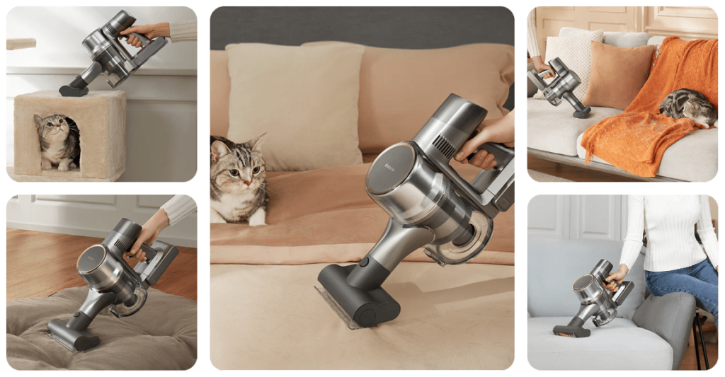 Dreame R20 kemur með tveimur aðalburstum. V-laga burstinn á R20 er hannaður með það markmið að henta á marga mismunandi gólffleti, burstinn minnkar einnig lýkur á því að hár flækist utanum burstann. Mjúki rúlluburstinn hentar á fínni gólf. Í sameiningu eru burstarnir vígir á flestalla gólffleti
