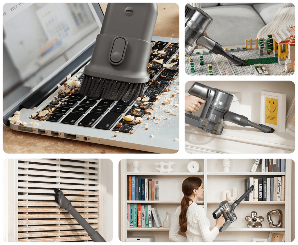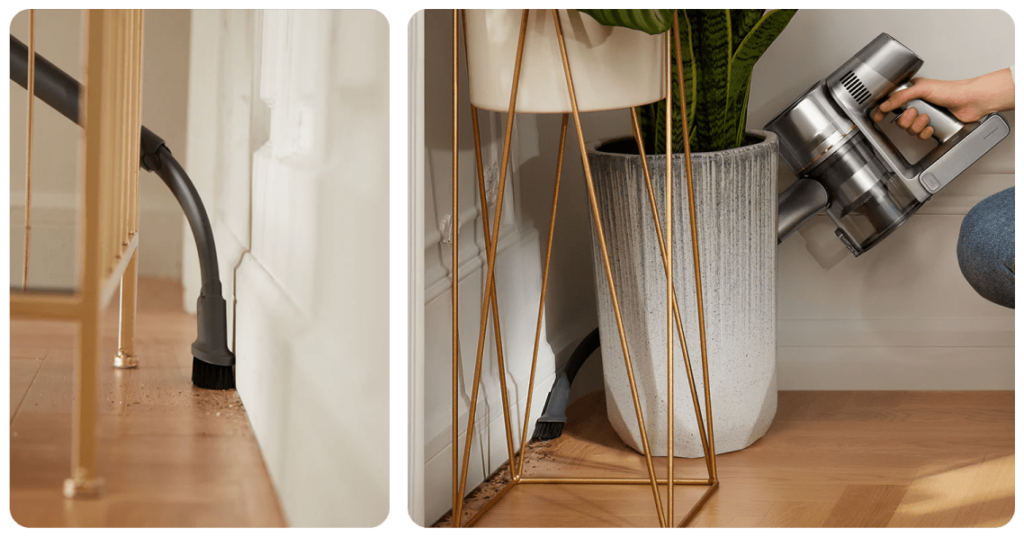 2-í-1 burstinn og beygjanlegur sprungustútur henta á minni yfirborð og þar sem erfitt getur verið að komast að með aðalburstunum.
