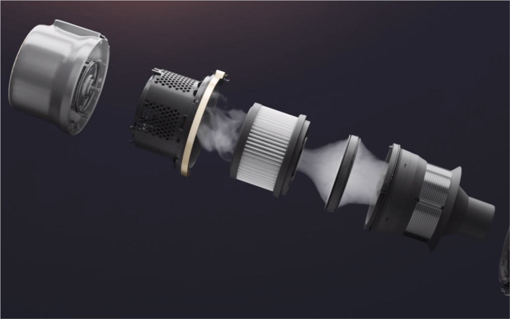 Allt ryk fer í gegnum 5-laga síukerfi sem síar út allt af 99.9% loftagna og kemur í veg fyrir að þær losni aftur í andrúmsloftið. Síukerfið sér til þess að rykið haldist í rykhólfinu sem er tæmanlegt með einum hnappasmell.