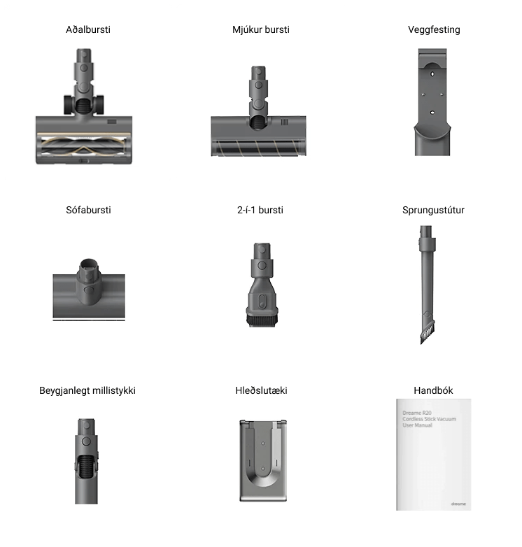 Dreame R20 er handhæg og öflug handryksuga sem að dugar í allt að 90 mínútur á einni hleðslu. R20 ryksugar heimilið með jöfnum og kröftugum 190AW sogkrafti og með burstalausum 125.000RPM mótor heyra hár, ryk, óhreinindi og rusl sögunni til. R20 fylgir veggfesting þar sem hægt er að hlaða vélina ásamt því að geyma aukahluti.