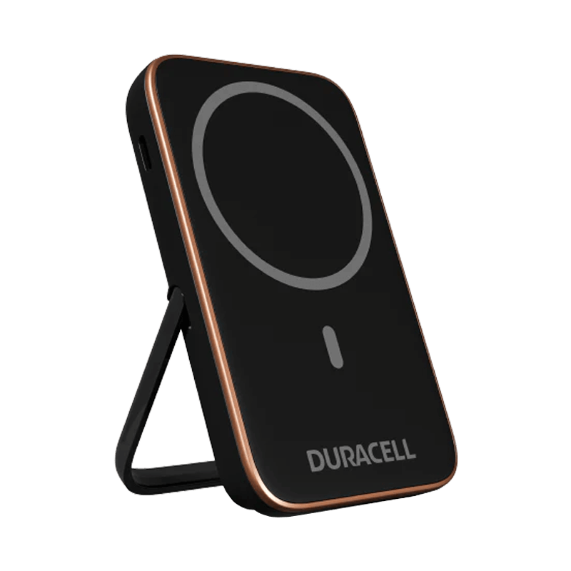 Duracell Micro 5 er léttur og fyrirferðarlítill 5.000mAh hleðslubanki sem má taka með í handfarangur. Hleðslubankinn er með MagSafe tækni og seglast iPhone símar við hann. Virkar einnig fyrir alla aðra síma sem styðja þráðlausa hleðslu. Hægt er að tengja snúru í hleðslubankann og hlaða þannig eða tvö tæki í einu. Útdraganlegur standur er á hleðslubankanum sem hægt er að nýta sem símastand.