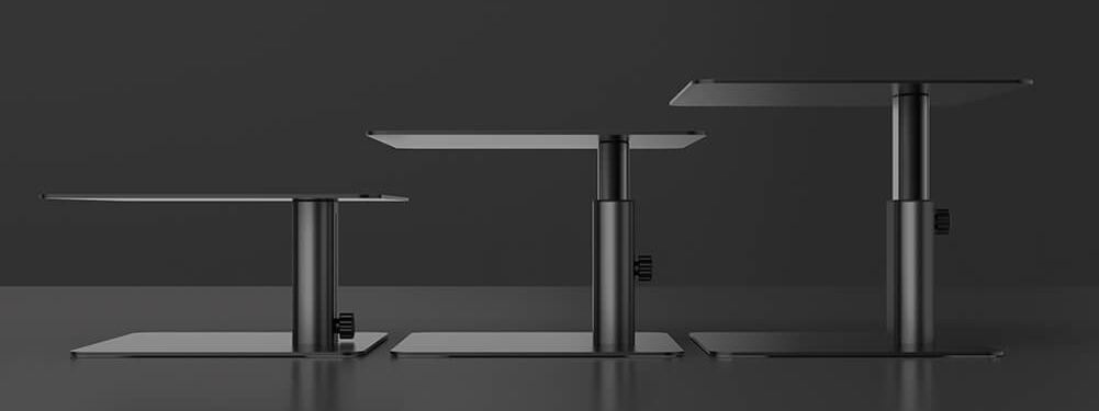 Sterkbyggður standur sem er hægt að hækka og lækka eftir þörfum. Standurinn getur hjálpað til við að halda vinnuaðstöðunni í hárréttri hæð og vernda þannig háls og bak við lengri setur.