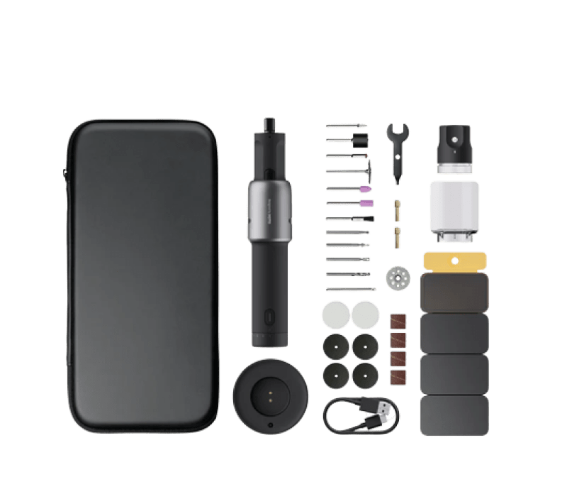 HOTO fræsarinn er með rafhlöðu sem að endist í 50 mínútur, öflugan mótor sem að nær 25.000 snúningum á mínútu en er þó ekki nema 240 grömm á þyngd.
