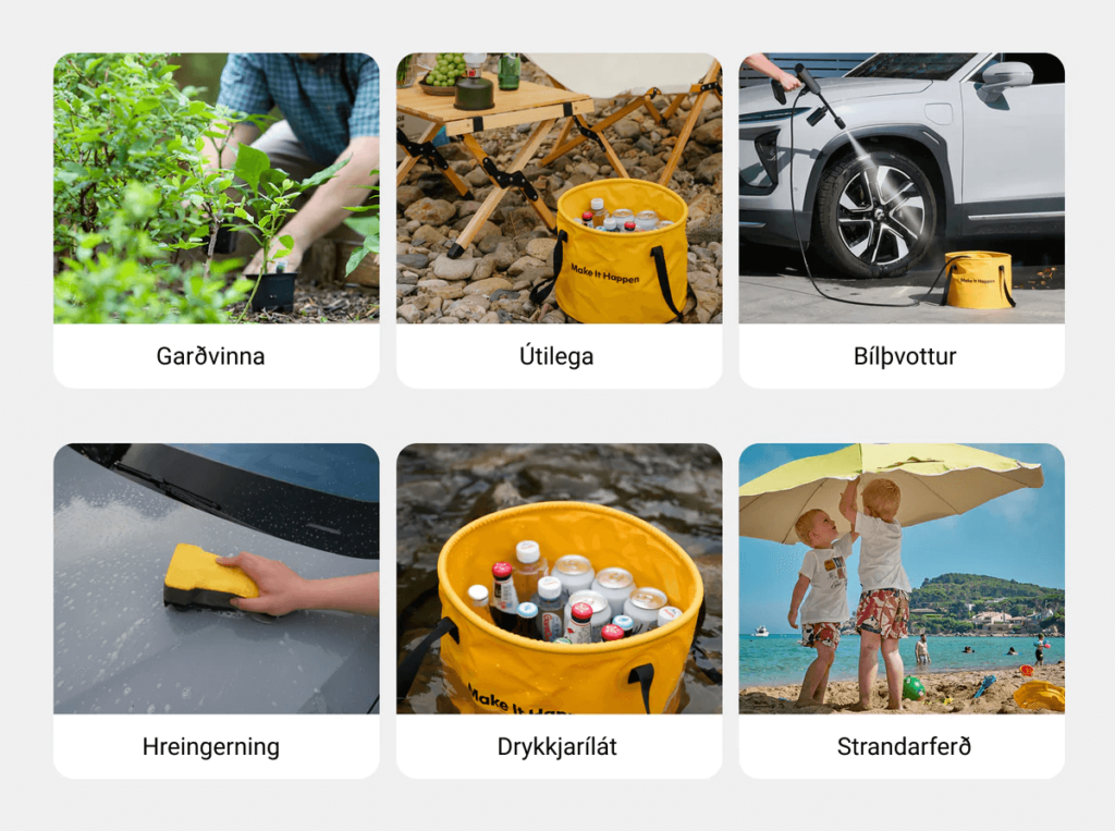 Frábær viðbót við Hoto háþrýstidæluna. Settið inniheldur 20L samanbrjótanlega vatnsfötu með sterkum handföngum, bylgjaðan tvíhliða svamp og hárfínan og þéttann 30x60cm klút.