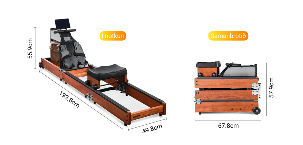 Róðravélin pakkast snyrtilega saman þegar hún er ekki í notkun þannig að hún tekur einstaklega lítið pláss þegar hún er ekki í notkun.