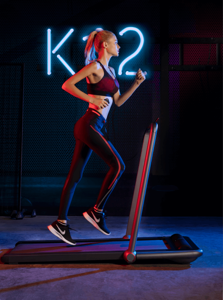 Kingsmith hlaupabrettin eru hinn fullkomni æfingarfélagi, hlaupabrettið er samanbrjótanlegt og er því hægt að geyma það þægilega á milli hlaupa. Brettið sjálft er breitt og með undirlagi sem styður vel við líkamann á meðan á æfingu stendur. Hægt er að sækja app í símanum sem tengist við hlaupabrettið og þar getur þú búið til æfingarplan, sett þér markmið, séð hversu mörgum kaloríum þú hefur brennt og fleira.