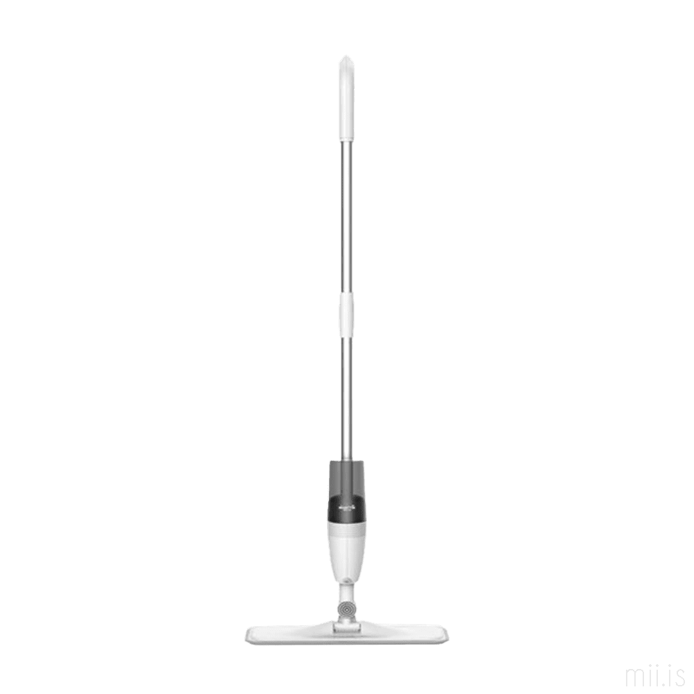 Þú einfaldlega fyllir vatnstankinn af vatni (hægt er að blanda sápu eða ilmolíu fyrir góða lykt) og notar handfangið á moppunni til þess að spreyja á gólfið fyrir framan moppuna. Þannig kemur þú í veg fyrir að fylla heila fötu af vatni og bleyta gólfið óþarflega mikið.