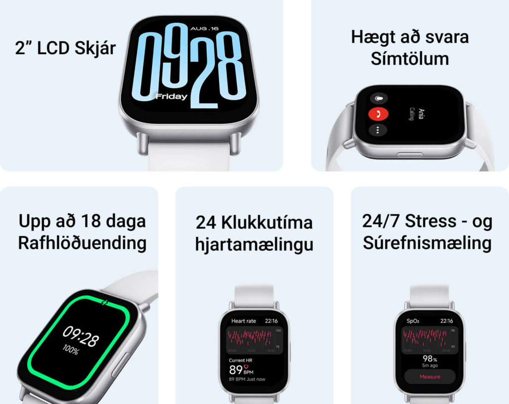 Ramminn á Redmi watch 5 Active er hannaður með sérstöku málmhúðuðu plasti sem bætir höggþol úrsins og er tilbúinn í hvaða ævintýri sem þú ferð í.