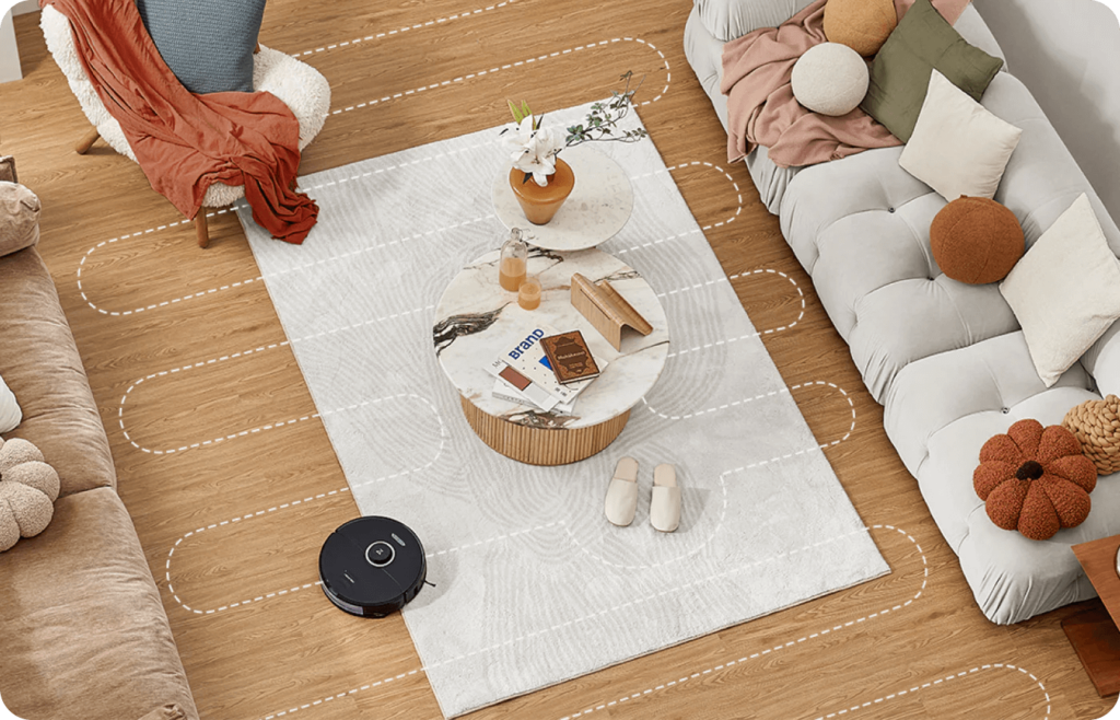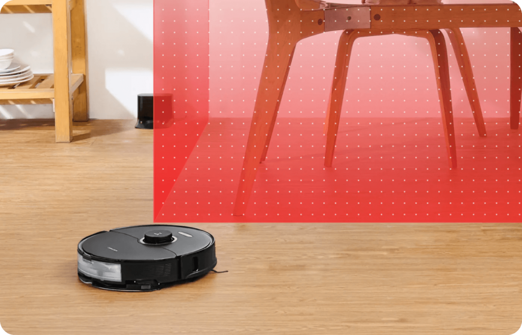 Roborock S8 er með myndavélakerfi að framanverðu sem sér mögulega aðskotahluti sem gætu orðið í vegi hennar og býr til leið framhjá því svo að hún flækist ekki í t.d sokkum, snúrum eða inniskóm.