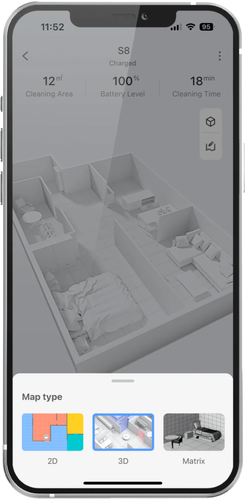 Roborock S8 getur kortlagt heimilið í þrívídd fyrir enn meiri nákvæmni. Þá er líka hægt að bæta húsgögnum inn í snjallforritið til að gera hreingerninguna ennþá skilvirkar og betri.