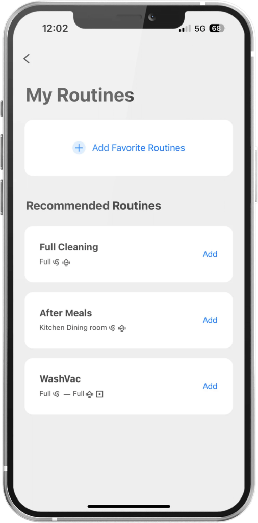 Hægt er að búa til fjölda af mismunandi rútínum sem ryksuguvélmennið fylgir. Hægt er að stilla mismunandi vatnsmagn og sogkraft eftir rýmum og á hvaða tímum vélin fer af stað.