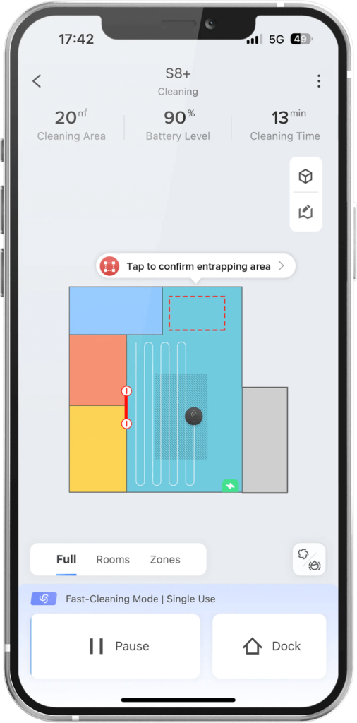 Roborock S8 kemur með tillögur að bannsvæðum og sýndarveggjum í litlum rýmum þar sem vélmennið gæti átt í hættu að festast.