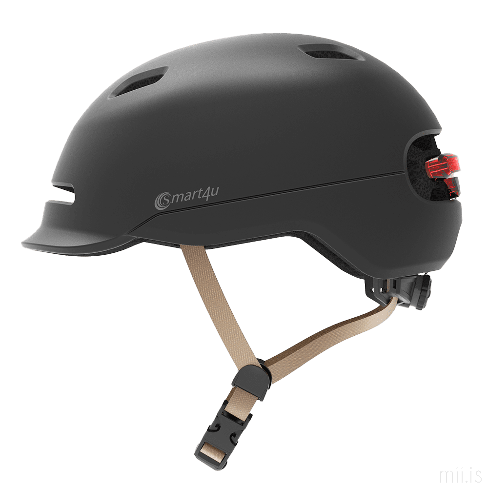 Hjálmurinn hefur LED-rönd á bahliðinni sem gerir þig sýnilegan í umferðinni og minnkar þörfina á endurskínsmerkjum. Það sem gerir hjálminn snjallan eru innbyggðir skynjarar sem skynja birtustigið í kringum þig og gefa frá sér LED-ljós í samræmi við birtuna.