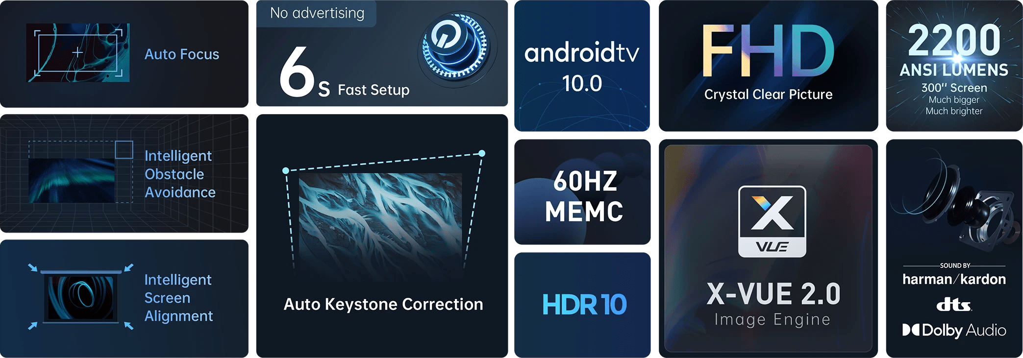 HORIZON sameinar öflugustu myndbandseiginleika XGIMI og gerir þá enn aðlögunarhæfari með innbyggðum AI-skynjara. HORIZON nýtir sér litla sem enga seinkun myndar, góða skerpu og framúrskarandi myndgæði til að fullkomna útkomu skjávarpans.