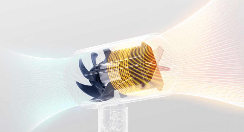 Þrátt fyrir að vera einungis um 21cm á stærð þá er kröftugur 1600W, 20.000RPM mótor í hárblásaranum sem að þurrkar hárið á augabragði.