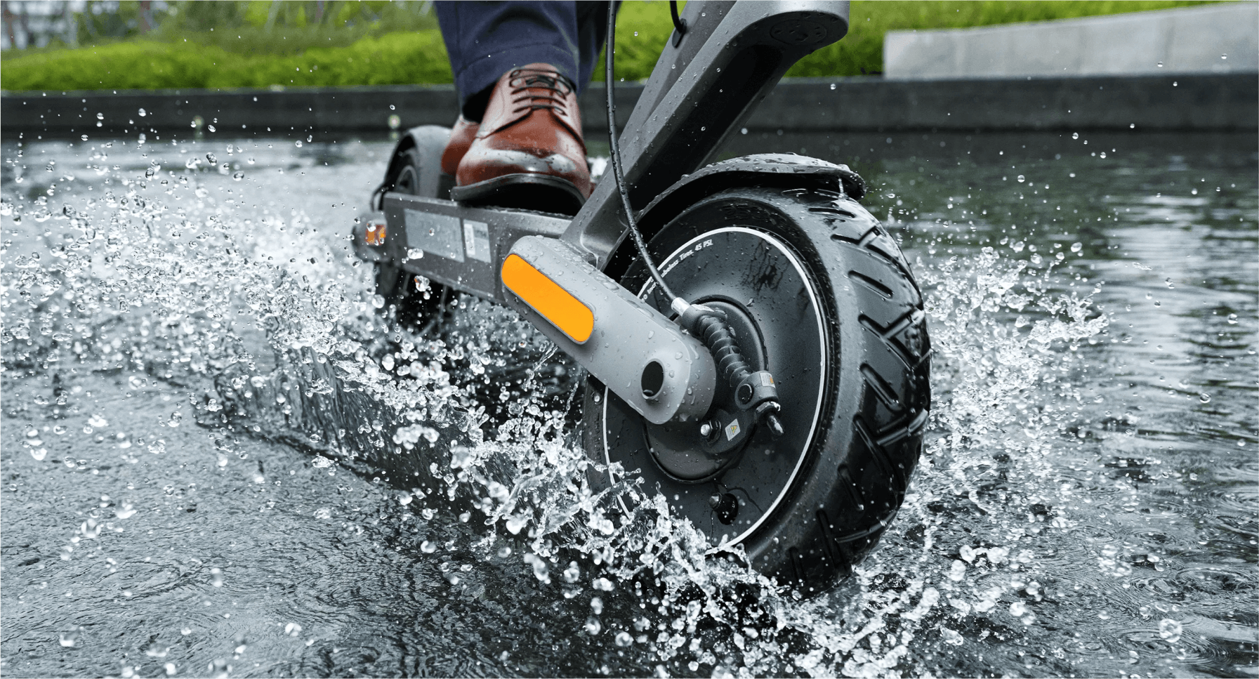 Scooter 4 Ultra er með IP55 vatns- og rykvörn sem þýðir að hjólið er betur í stakk búið í íslenska veðrið. IP55 veitir vörn gegn vatni úr öllum áttum en ekki að fara á kaf í vatn eða vera í vatni til lengri tíma. Það er því mælt með því að fara varlega í kringum polla og þegar rigning er úti.