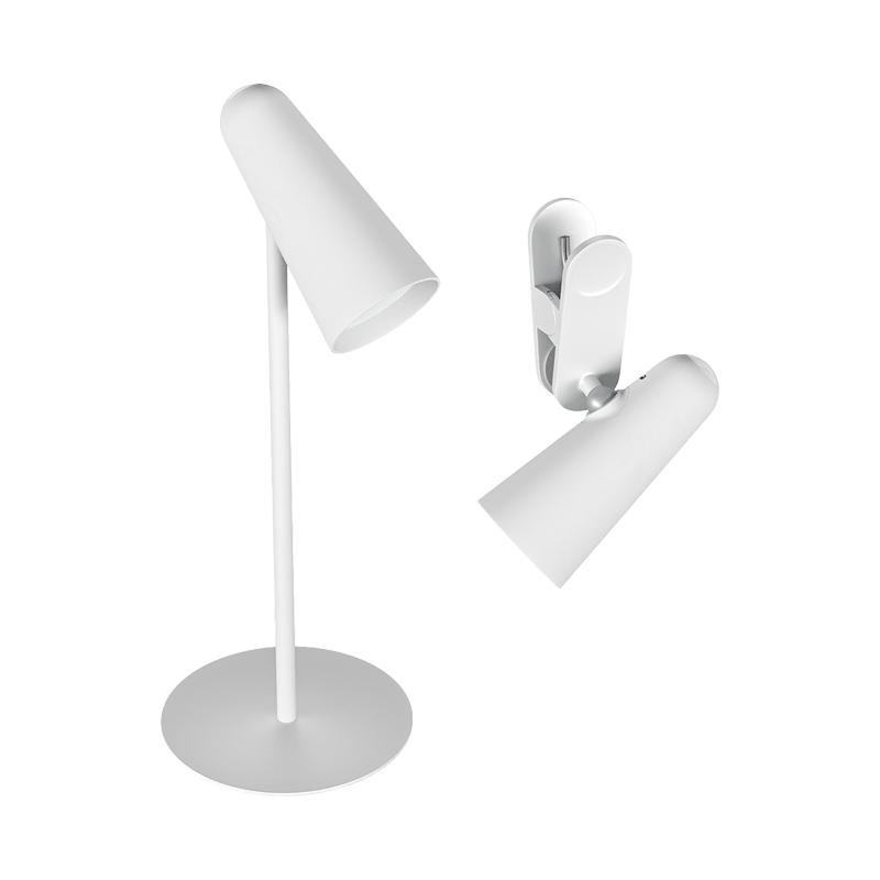 Hægt að taka lampann af bæði borðstandi og klemmu til að nota sem vasaljós.