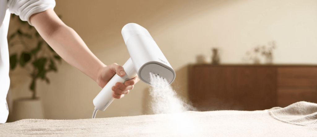 Xiaomi Garment Steamer vegur aðeins 770gr og er hægt að brjóta hann saman svo hann passi betur í töskuna fyrir ferðalaugin.