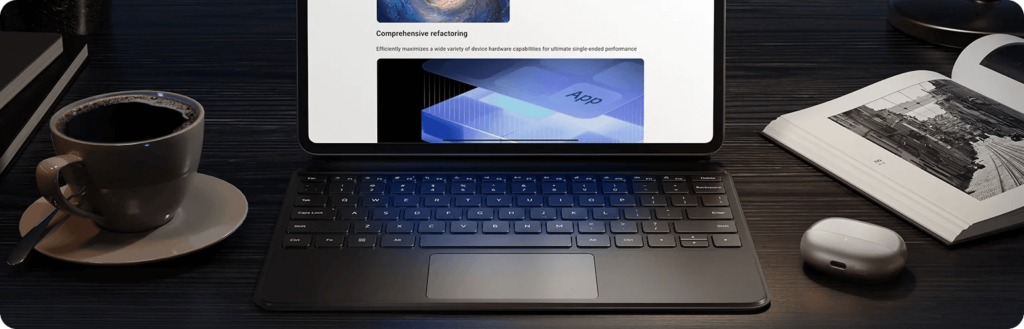 Xiaomi Pad 6S Pro lyklaborðið er með snertiflöt sem er einnig með skemmtilegum flýtileiðum.
