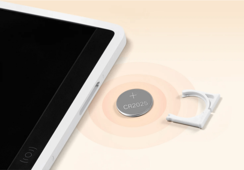CR2025 hnapparafhlaðan er eingöngu notuð þegar verið er að stroka út af teiknitöflunni, miðað við að stroka út 100 sinnum á dag endist rafhlaðan í rúmlega ár.