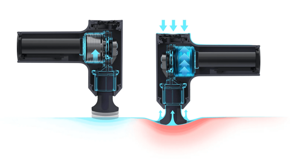 Mini nuddbyssan er með innbyggða snjallskynjara sem aðlaga högghraða og kraft eftir því hversu fast nuddbyssunni er þrýst niður. Nuddbyssan er með þrýstingsvísi sem hjálpar við að veita réttann þrýsting.