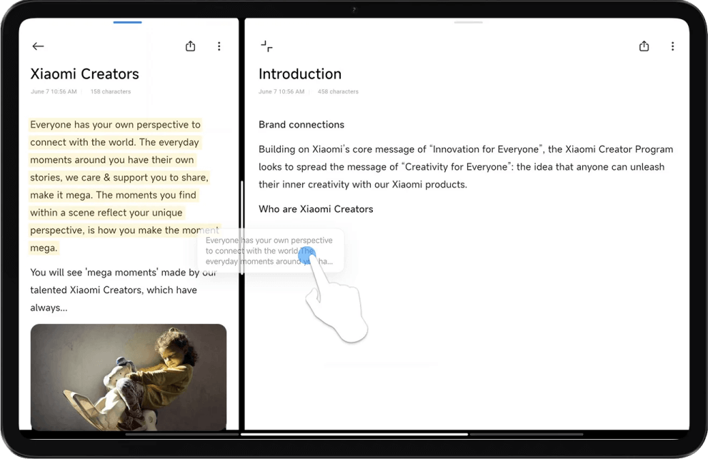 Textar, myndir og skjöl er auðvelt að deila á milli forrita með því einfaldlega að draga og sleppa.