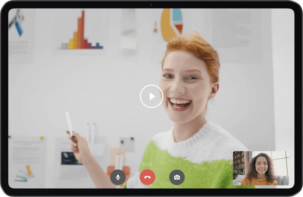 Frammyndavélin á Xiaomi Pad 6 er einstaklega góð fyrir fjarfundi, sjálfkrafa fyllir hún myndina af ljósi ef lítil birtuskilyrði eru til staðar svo að þú gjörsamlega skínir. FocusFrame passar að þú sért alltaf aðalatriðið og virkar þótt að fleiri en einn séu í rammanum.