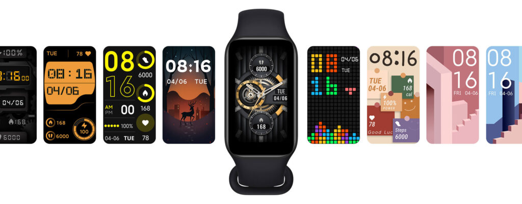 Það eru yfir 100 innbygðar skífur sem þú getur valið um sem hentar hvað stíl sem þú ert að vinna með. Hægt er að ná í fleiri skífur í gegnum Xiaomi Fitness appið.