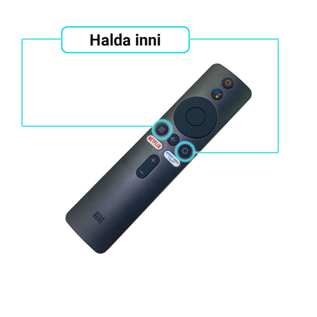 Til þess að para nýju fjarstýringuna þarf að halda inni “app” og “heim” tökkunum í nokkrar sekúndur í um 20cm fjarlægð frá spilaranum.