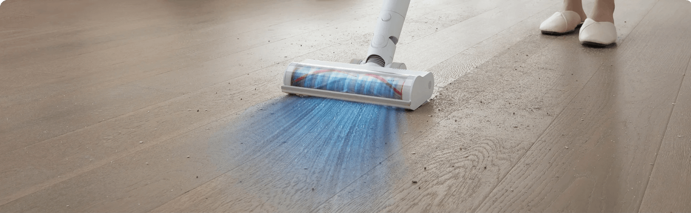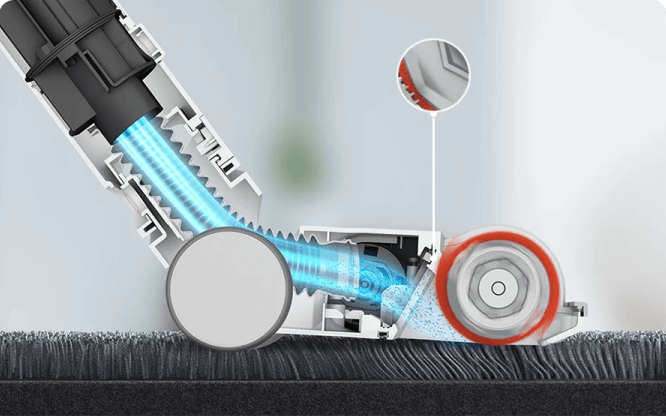 Breiður og öflugur aðalbursti sér til þess að flýta fyrir þrifunum með því að ryksuga stærri flöt í einu, dekkin aftaná burstanum hjálpa til við að ryksuguhausinn komist auðveldlega á milli staða og þar að auki er V-laga burstinn hannaður með það í huga að minnka flækjur. V-laga burstinn á G9 Plus er hannaður með það markmið að henta á marga mismunandi gólffleti, ryksugan er því jafnvíg á flísar, parket, teppi og flotuð gólf